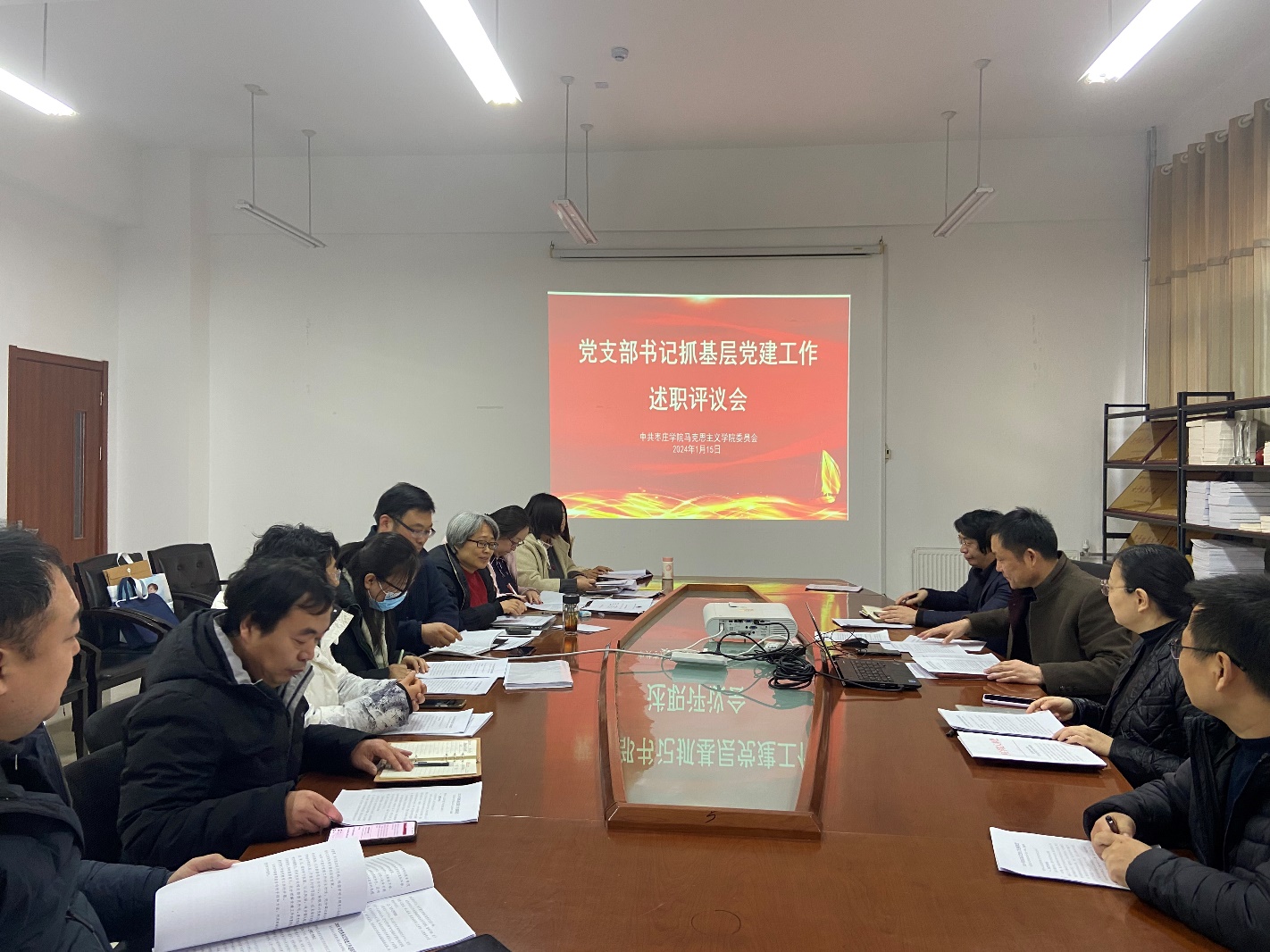 根据校党委工作部署,2025年1月15日下午,我院在豁然楼A315会议室召开党委扩大会议,先后进行了2024年度党支部书记全面从严治党述责述廉评议考核和抓基层党建述职评议考核工作。院党委委员、各党支部书记、专业负责人、教研室主任等参加会议,学院党委书记仝锡文主持会议。