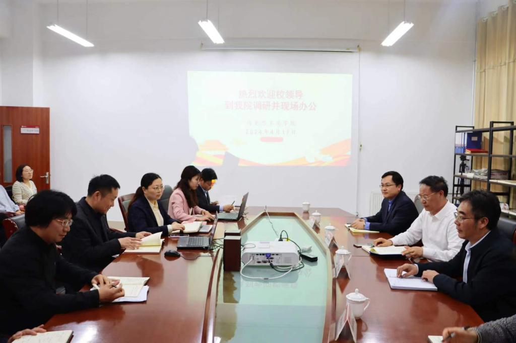 4月17日下午,校党委副书记、校长李文喜,校党委委员、副校长安涛在校办公室、教务处等部门同志陪同下,到我院现场办公,对有关工作进行安排部署。