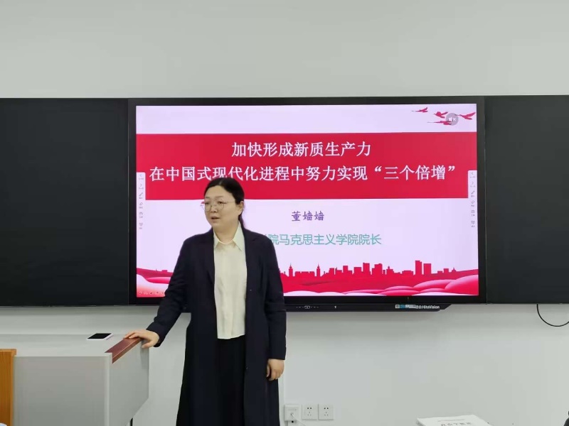 为帮助我院新发展入党积极分子筑牢信仰之基,提升党性修养,端正入党动机,为党的事业培养更多优秀的后备力量,4月17日晚,学院党委副书记、院长董嫱嫱在豁然楼A316以“加快形成新质生产力,助推教育高质量发展”为主题,为我院入党积极分子讲授党课。