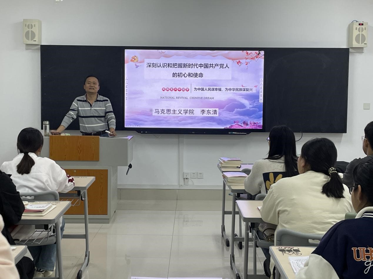 李东清从“中国共产党人初心和使命的提出、中国共产党人为实现初心和使命的奋斗历程、新时代下青年大学生怎么做”三个方面,对深刻认识和把握新时代中国共产党人的初心和使命进行了深入细致的讲述。他指出,全面建设社会主义现代化国家,是一项伟大而艰巨的事业,前途光明,任重道远,要求我们必须增强忧患意识,坚持底线思维,做到居安思危、未雨绸缪,准备经受风高浪急甚至惊涛骇浪的重大考验。他强调要做到“四大”:立大志、明大德、成大才、担大任,把领会精神与自我发展结合起来,用知识不断武装自己,用能力不断强壮自己,才能在为中国人民谋幸福的征程中奉献自我,也才能在为中华民族谋复兴的过程中成就自我。