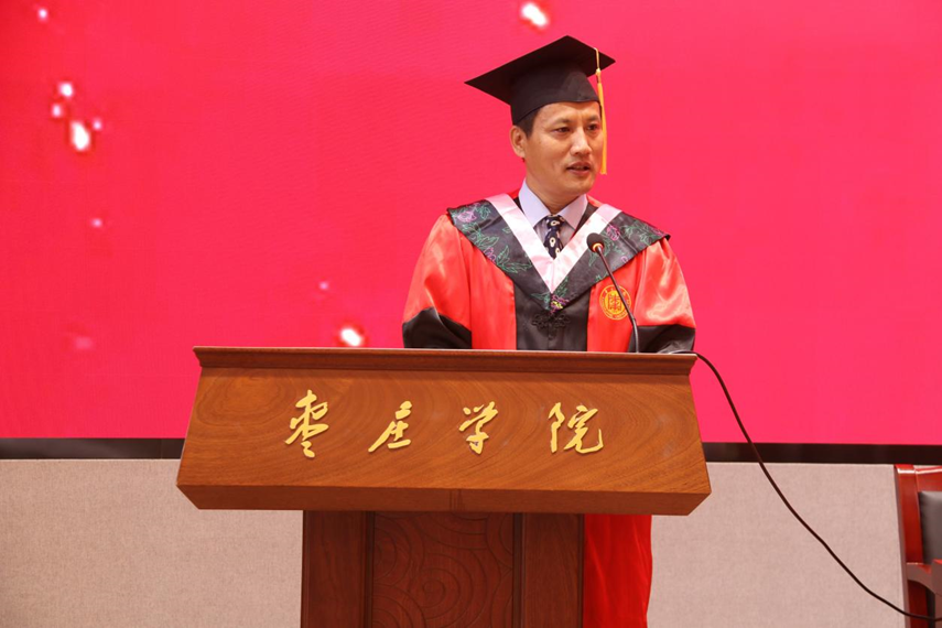 仪式在庄严的国歌中拉开帷幕。首先,陶道强向毕业生表达了衷心的祝贺和真挚的祝福,勉励毕业生们牢记“兼爱、尚贤、博物、戴行”的校训,希望毕业生们在人生的新阶段再接再厉、再创佳绩,努力成长为有理想、有担当、有本领的社会主义接班人。