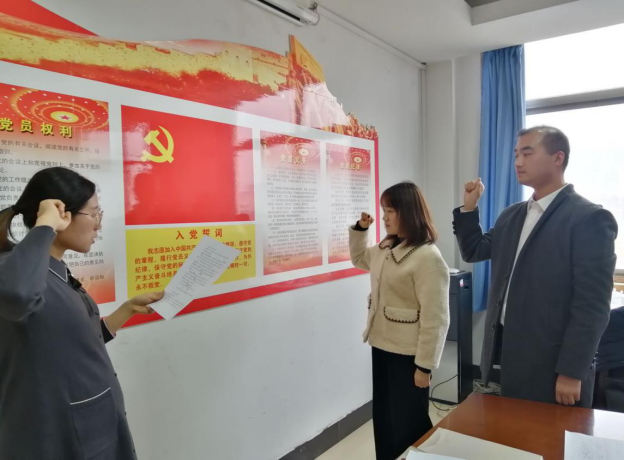 最后,党总支书记郭勇、党总支副书记汪涛对新发展的党员以及新转正的同志表示祝贺,希望同志们谨记自己的责任,始终牢记自己是一名共产党员,严格规范和约束自己,认真履行党员义务。新发展的党员同志以及新转正的党员同志表示以后在工作、生活中处处以党员标准严格要求自己,发挥模范带头作用,不忘初心,为党的事业奋斗终身。