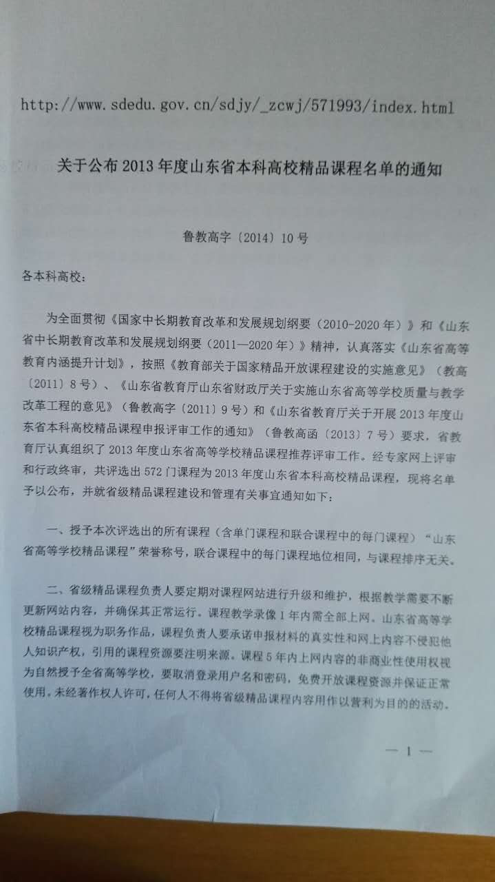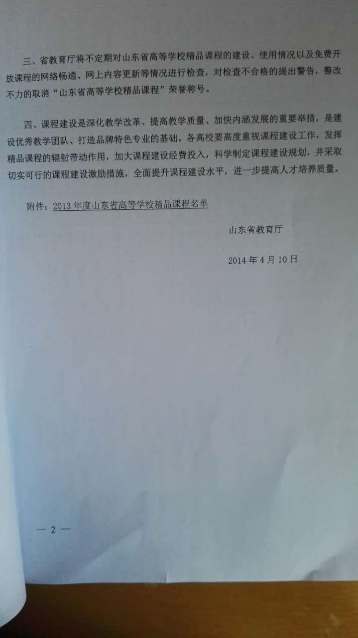 yl88858永利集团5门课获批2013年山东省高等学校精品课程