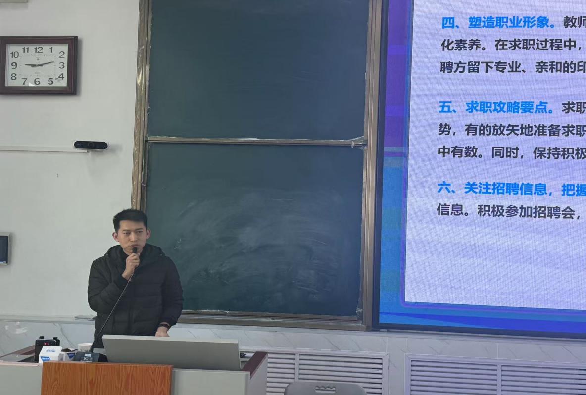 王旭涛以自己毕业五年来的教学经验和职业成长经历为基础,以“适应基础教育改革的教师素养与成长路径”为主题,从职业发展规划、从教经验、科研探索等方面进行了详细的介绍。他以学长的身份给思政专业的师弟师妹详细讲述了自己的职业成长经验,为思政专业学生职业发展提供了参考。