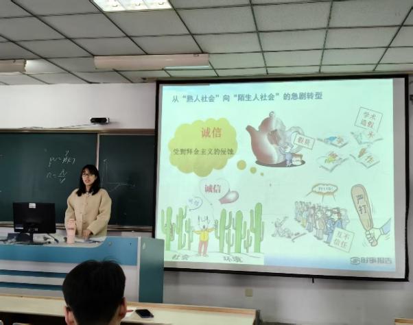 研讨会上,教师们提出诚信主题“三维融入”课堂策略。一是教学内容融入:在第九章“坚持全面依法治国”章节中,剖析新时代政务诚信、司法公信建设典型案例;在第四章“坚持以人民为中心”部分,结合诚信社会建设实践。二是教学方法融入:采用“问题链+情景模拟”教学法,引导学生思考“诚信缺失的社会危害”等现实问题;采用“案例对比教学法”,引入中外诚信治理案例,如“中国信用体系建设”与“西方信用危机”,增强学生制度自信。三是教学评价融入:将诚信表现纳入学生实践考核,设计诚信主题调研报告作为期中作业。教师们认为,还可以通过国际比较,在“全面从严治党”专题中,对比中外政党建设中的诚信治理经验。