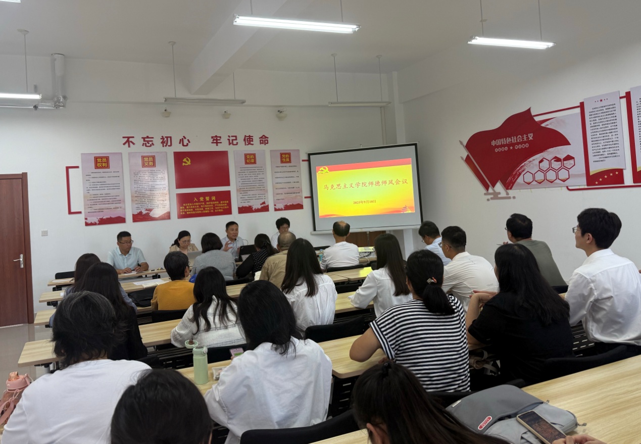 为进一步加强师德师风建设,提升教师的思想政治素质和职业道德水平,本次会议集体学习了《关于弘扬教育家精神加强新时代高素质专业化教师队伍建设的意见》《新时代高校教师职业行为十项准则》以及《新时代高校思想政治理论课教师行为规范和准则》等制度文件要求,通报了反面典型案例。