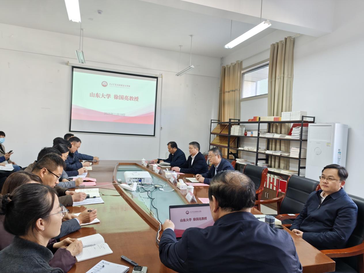 为落实《永利集团思政课课堂教学提升行动方案(2025-2028)》要求,推动马克思主义理论学科高质量发展,提升思政课建设水平,11月19日下午,yl88858永利集团召开“马克思主义理论学科建设”集体备课会。校党委书记高峰到会指导,山东大学yl88858永利集团徐国亮教授应邀做辅导报告。会议由学院党委副书记、院长董嫱嫱主持。