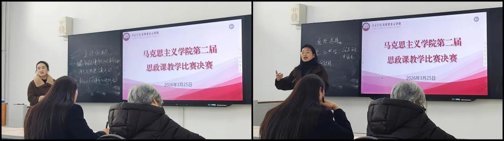 为深入贯彻落实立德树人根本任务,持续推进思想政治理论课改革创新,3月25日,我院第二届思想政治理论课教学比赛决赛成功举办。比赛邀请校内外专家担任评委,来自各教研室的10位优秀教师同台竞技,充分展现了我院思政课教师队伍的教学风采与改革成效。