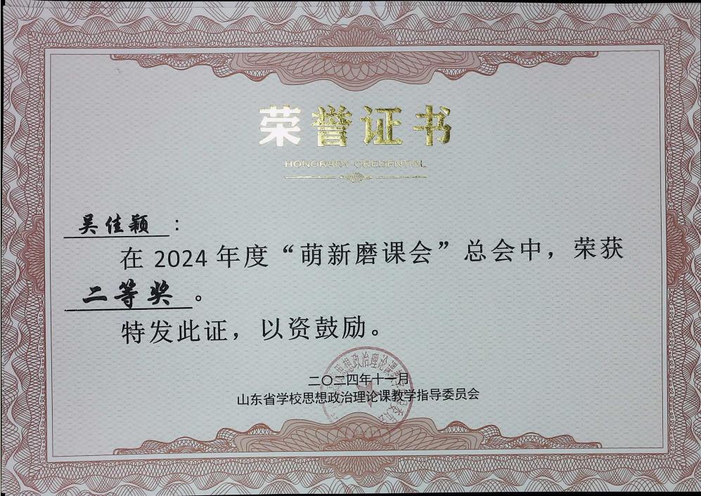 吴佳颖获2024年度“萌新磨课会”省级二等奖