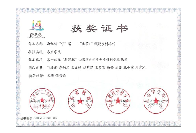 宋硕、傅秀云:第十四届“挑战杯”山东省大学生创业计划竞赛银奖指导教师