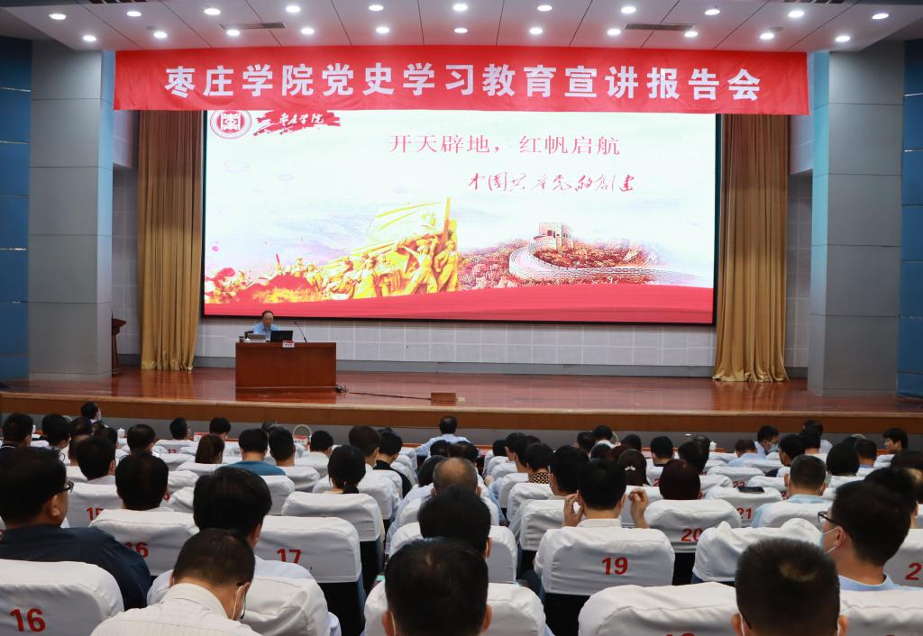 为进一步引导广大师生知史爱党、知史爱国,推动党史学习教育走深走实,6月4日下午,我校在综合楼学术报告厅举行党史学习教育宣讲报告会。校党委书记曹胜强以《开天辟地,红帆启航——中国共产党的成立》为题作报告,校领导李文喜、曾宪明、李目海、丰雷、安涛、孙正、张昌林、林勇出席报告会。学校副处级以上干部、yl88858永利集团全体教师、各二级学院师生代表共400余人到场聆听报告。