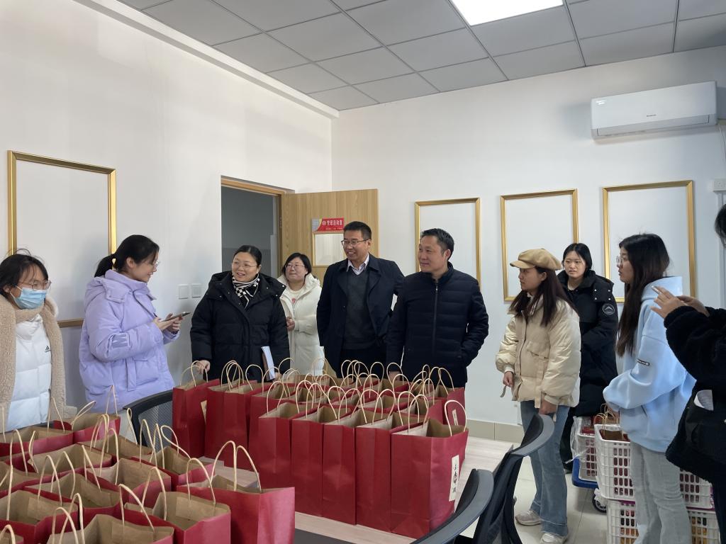 在宿舍楼内的“一站式”学生社区功能房内,仝锡文书记亲切问候考研同学,鼓励同学们以积极的状态面对挑战,并寄语考研学子,希望同学们沉着面对挑战,坚定信心,从容备考。随后,领导将精心准备的“考研福袋”发放到考研学子的手中,预祝他们旗开得胜,一战成“硕”。福袋中装有寓意前“橙”似锦的橙子、“苹”安上岸的苹果、属你最牛的“牛奶”,对考研学生寄予美好的祝福。