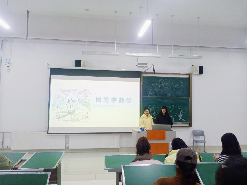 12月5日,我院于增信楼3120开展粉笔字培训活动。该活动诚邀美术与艺术设计学院的同学主持培训。培训课程围绕教学背景、教学分析、学法分析、教学过程、版式设计、教学效果六个板块展开。讲解结束后,同学们摩拳擦掌、跃跃欲试,一笔一划皆蕴含了无尽的专注和热情,在小小黑板上书写芳华与个性。