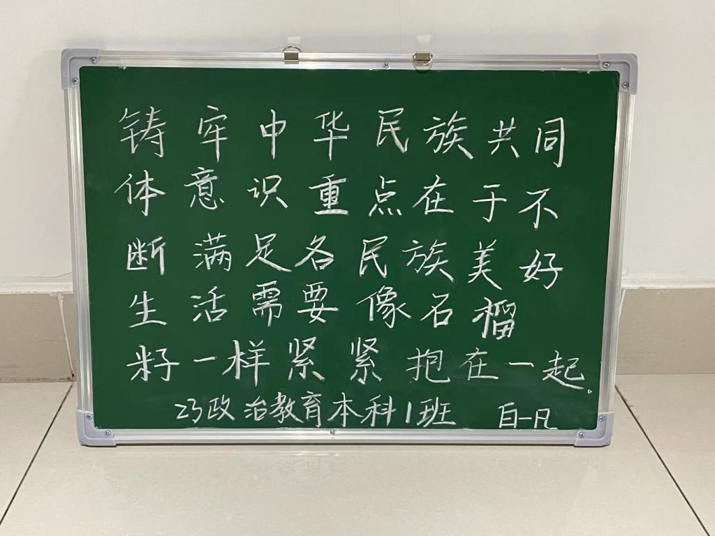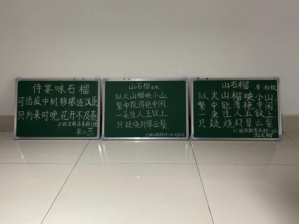 三尺讲台育桃李,一支粉笔写春秋。写好粉笔字,能潜移默化地提高书写,能润物无声地教育做人。本次活动不仅为我院学生搭建了一个学习书写的平台,更让他们在书写中领略了传统文化的魅力。我院学生将以实际行动传承和发扬中华优秀传统文化,为教育事业贡献自己的力量。