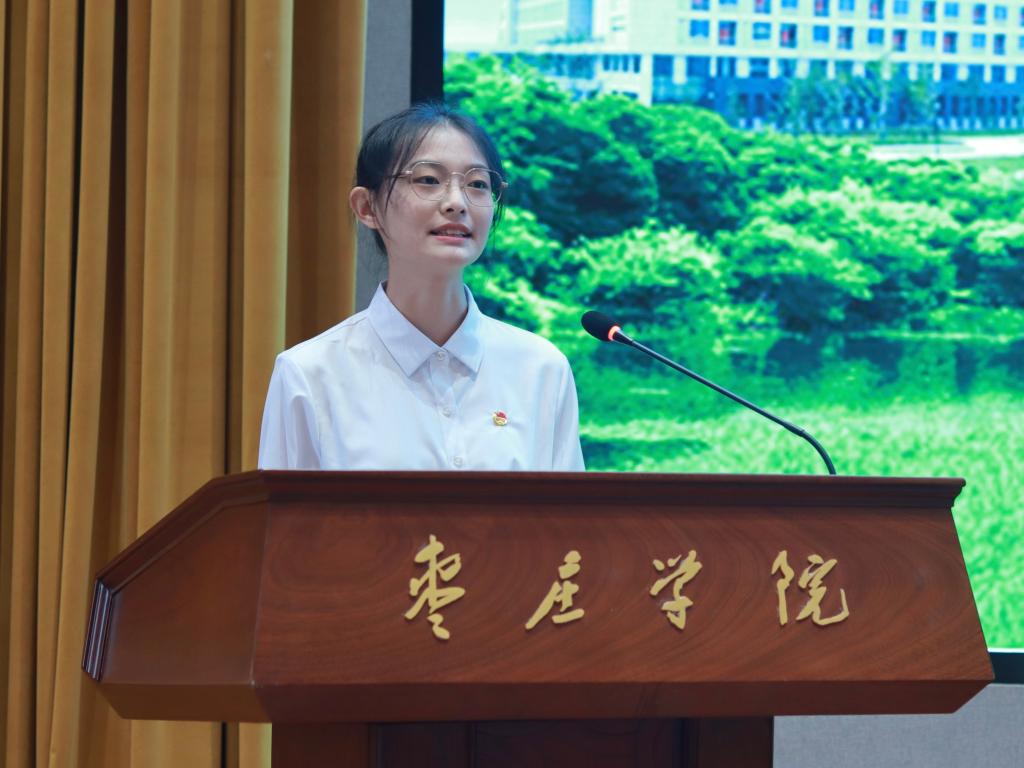 2021级政治教育本科1班学生党员、山东高校青年师生宣讲团成员、省师范生技能大赛一等奖获得者王宝铃作为在校生代表发言。她结合自己的在校经历,以“感恩、自省、勤奋、实践、皮实”五个词激励同学们度过大学这个人生中最美好的的阶段,并祝愿大家永远拥有赤子之心,敢于再出发,归来仍少年。