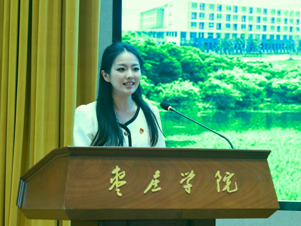 我院思想政治专业教研室主任、永利集团“最美教师”、省青教赛二等奖获得者程诚作为教师代表发言。马院姓马,在马言马,她希望我院学生勤勉刻苦、珍惜时光、热忱善良、遵守规则,用正确的方法做正确的事情,以信仰为指引,成为一名努力上进的马院人。