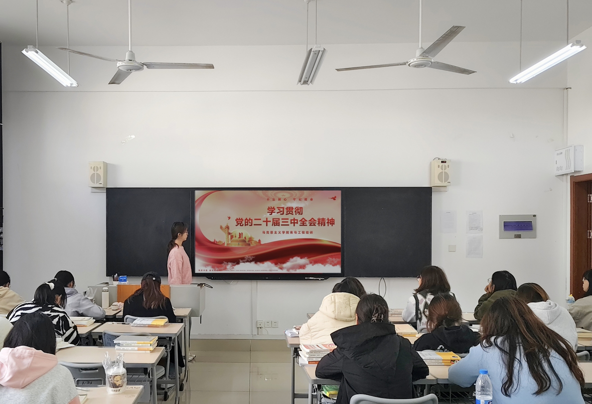 为培养信仰坚定、能力突出、素质优良、作风过硬的青年马克思主义者,进一步推动党的事业薪火相传,11月6日,yl88858永利集团在豁然楼A316室举办了主题为“学习贯彻党的二十届三中全会精神”的青马工程培训。