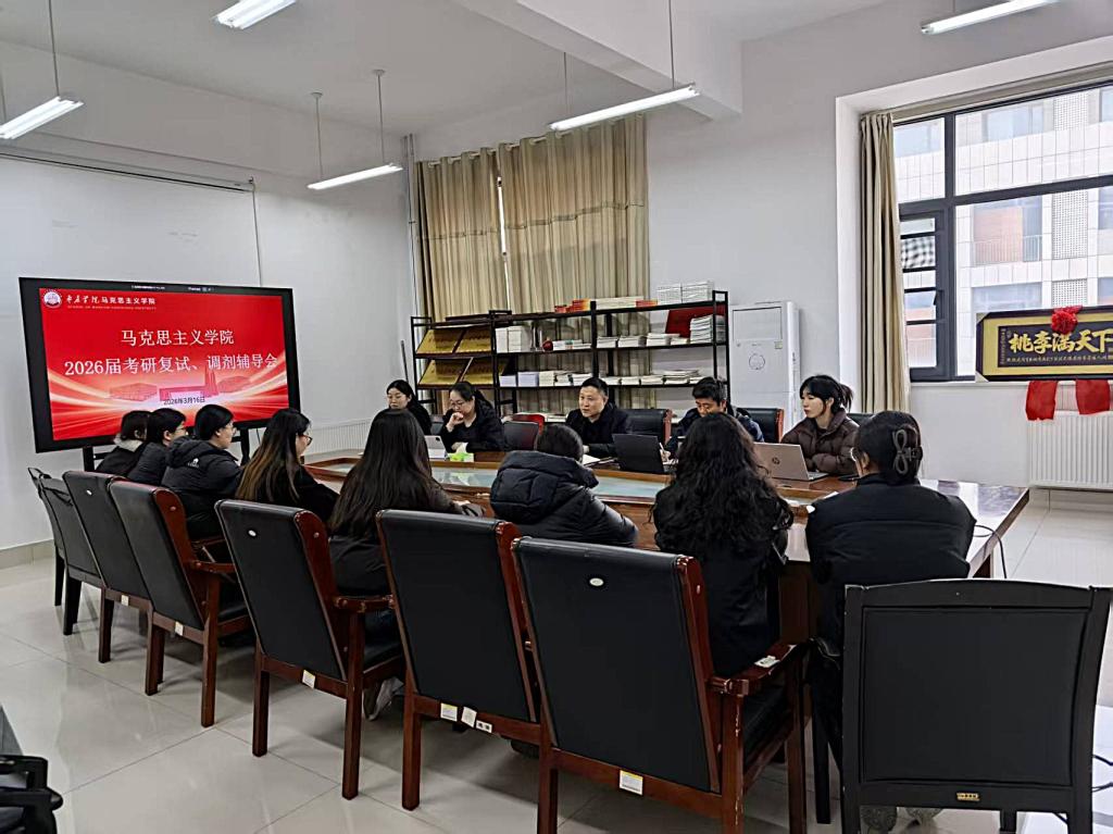为帮助2026届考研学子科学备战复试、精准把握调剂政策,3月16日下午,学院在豁然楼A315会议室举办了考研复试、调剂专题辅导会。会议特邀博士、省事业单位招录面试专家邢西敬副教授,省思政课比赛获奖教师程诚副教授,青年教师徐寒冰及优秀在读硕士研究生姚继阳作经验分享。学院2026届考研上线学生参加辅导会,学院党委书记仝锡文主持会议。